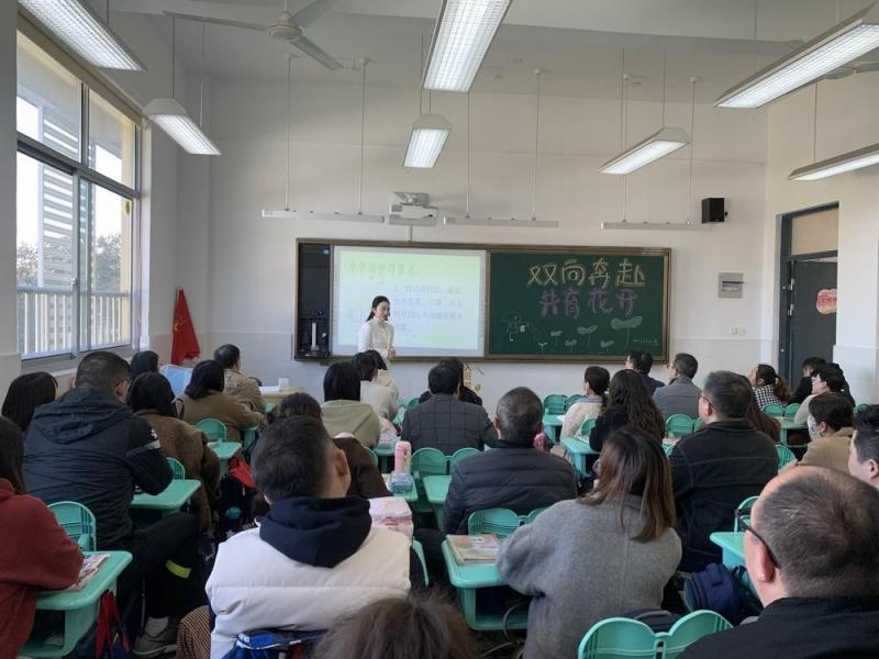 本次活动共分为家校交流、童年分享会和剪贴画创作三大部分。第一个环节是由一年级各班语数英任课老师分别根据自己学科的情况,与家长交流。语文老师围绕“一年级语文学科听说读写的培养”这个主题,从倾听能力、朗读能力、书写能力和阅读能力这四个方面着手,向家长们分享了培养这四项能力的有效方法。数学老师带着家长们了解了本学期学习的主要内容,指出一年级学生良好学习和行为习惯的重要性,并对开学以来表现进步的同学进行了表扬。英语老师对学生的学习情况进行了概述,并对学生在英语学习上存有困惑的地方进行了解答,并期望通过家校配合,让学生的学习能力有所提高。