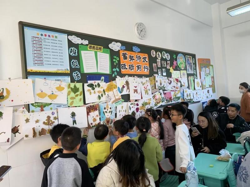 第三个环节是家长和孩子共同创作动漫剪贴画,并进行分享和展示。首先孩子带着家长走进校园,寻找合适的树叶、落花、草籽等自然材料,准备制作动漫人物贴画。接着利用收集和准备好的材料,亲子合作,将两个不同时代的动漫人物融合到同一张画面中,创作出属于自己的家庭贴花,并为作品命名。最后进行班级的作品展示,说一说创作背后的故事和作品名称的含义,并选出最佳人气作品。