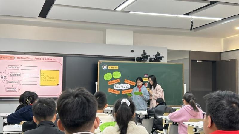 五年级组宋洁老师执教5B Unit7 Chinese Festivals。宋老师的课整体教学过程流畅,教学方式灵活多样,具有启发性,巧妙地运用了思维导图及提问等方式引导学生理解课文内容,让学生自主地参与学习,并以积极的态度投入到本节课的学习中。最后的拓展环节,设计也比较新颖,用阅读故事猜节日的方式拓展了本节课的内容,有效地激发了学生的学习兴趣及求知欲。