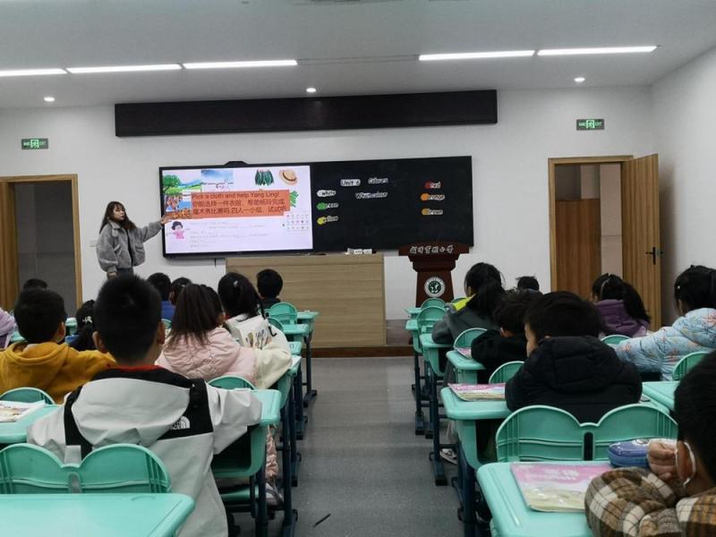 三年级组张婷钰老师执教3A Unit6 Colours。她先是用欢快的视频歌曲引入,询问了一些问题,如:what colour is...?等。接着又出示了四个季节的图片,将四个季节与颜色联系起来,后面还运用了小组合作等方式进一步讲解课文内容,后面的阅读方式更是多种多样,有齐读、分组读、自读等。课堂安排紧凑,科学合理,欢快愉悦。