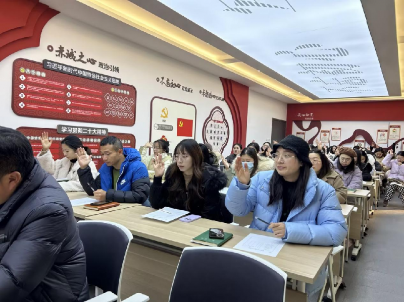 最后,陈建根书记对寒假期间党员教师的言行提出了几点要求:积极学习党的新思想、新理论;联系自己的教育工作,结合双减,进行反思;在家庭社会中做好榜样示范作用;不进行有偿家教、赌博、酗酒等有违师德的行为。
