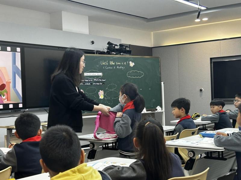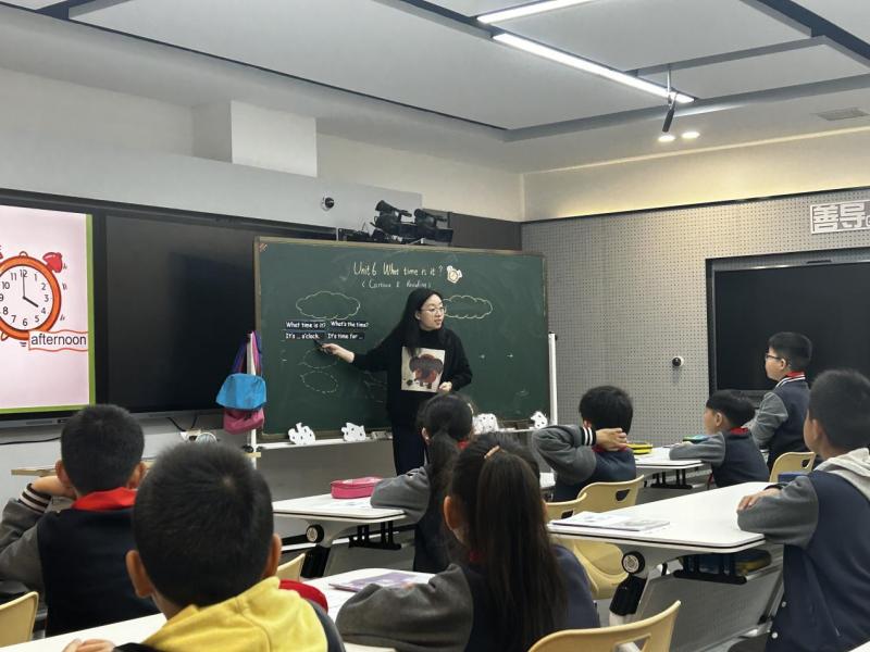 首先,由区学科带头人吴婷婷老师执教3B《Unit6 What time is it?》Cartoon time& Extended reading一课。吴老师以丰富的教学经验,娴熟的教学技艺,取得了良好的教学效果,起到了较好的示范作用。公开课结束后,听课教师和上课教师进行交流互动,区教研员凌云璇老师以及听课教师点评每个教学活动的亮点和不足之处,使每位老师都能在这次活动中有所思、有所获。