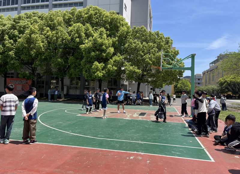 在炎炎夏日,一场激动人心的篮球赛在盛泽实验小学的蓝去吃举行,吸引了众多学生篮球爱好者和观众的目光。比赛不仅是一场体育竞技,更是一次班级团结和果敢精神品质的展示。