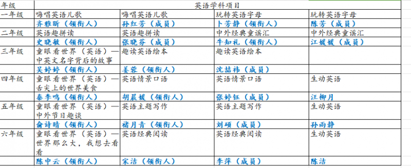 3. 以“项目制”抱团发展。本学期将在英语教研组内根据各个研究项目组建相应的研究团队,如信息化教学团队、阅读教学团队、作业设计团队等,以领衔人负责制的形式进行,抱团发展,共促成长。