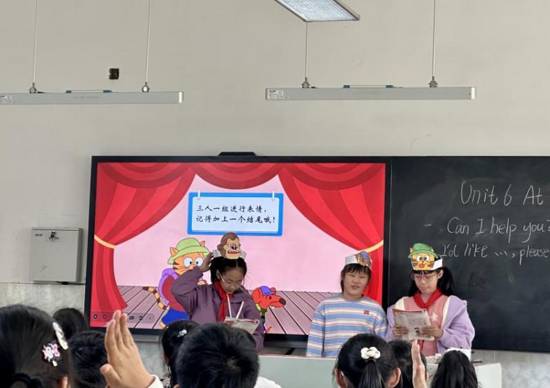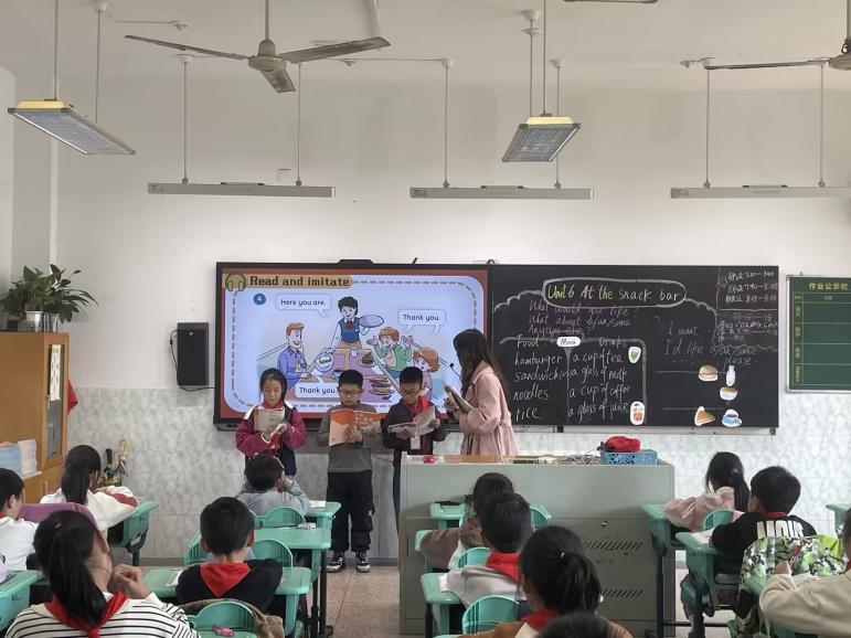 11月21日下午第一节,张婷钰老师执教4A Unit6 At the snack bar第一课时。她先是用欢快的歌曲引入,再和孩子们进行了Free talk。张老师准备充分,制作了精美的板贴头饰等教具,精心设计教学课件,板书设计也很用心。张老师充分关注全体学生的学习状态,整堂课做到了让所有同学都参与课堂活动,同学们积极性高。下午第二节,由汪柳月老师执教4A Unit6 At the snack bar第二课时。她先对storytime进行了复习与总结,再引出本节课的重点。汪老师还运用了小组合作等方式进一步讲解课文内容,后面的阅读方式更是多种多样,有齐读、分组读、自读等。课堂安排紧凑,科学合理,欢快愉悦。