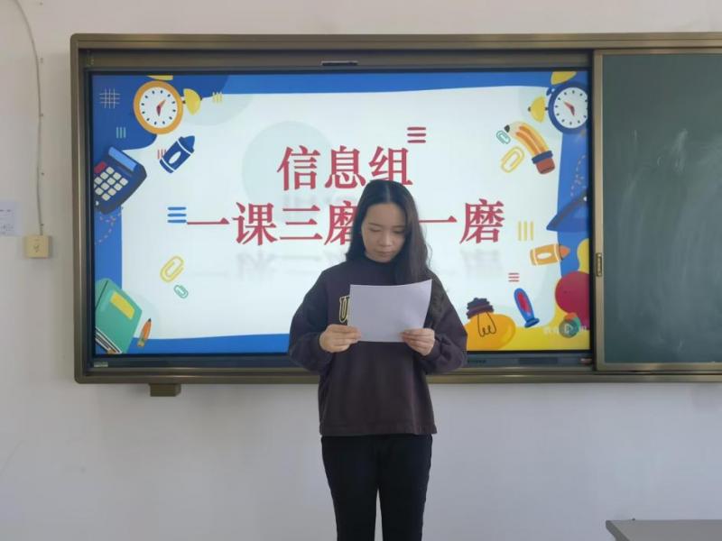 活动当天,陶芬老师对自己即将执教的《计算机中的编码》一课进行了精彩的说课。她从教材分析、学情分析、教学目标、教学重难点、教学过程等方面进行了详细阐述,展现了对课程内容的深刻理解和对教学环节的精心设计。信息组其他成员全程聚精会神地聆听,时而点头表示认同,时而低头记录要点。
