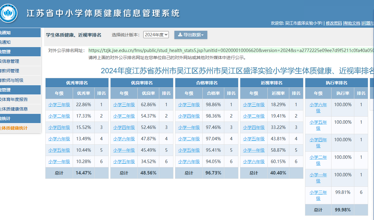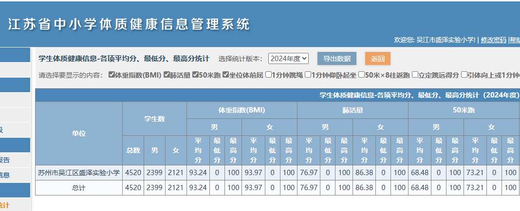 2024年度盛泽实验小学体质健康信息公示