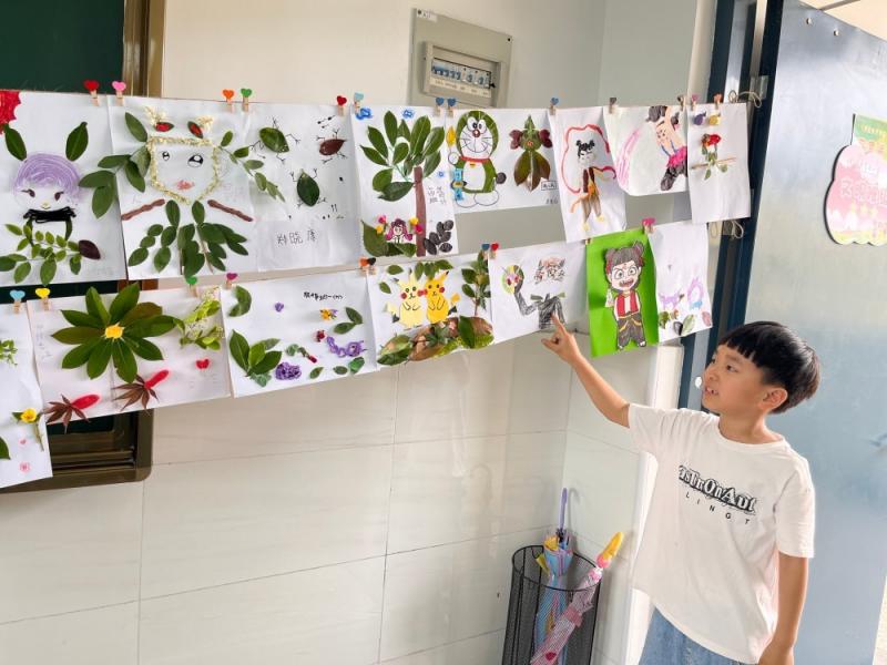 随后进入的“寻找动画人物色彩”环节充满了趣味性和探索性。亲子一起走进校园,寻找合适的树叶、落花、草籽等自然材料,准备创作动漫人物剪贴画。