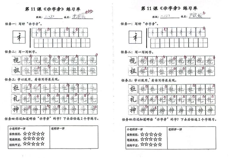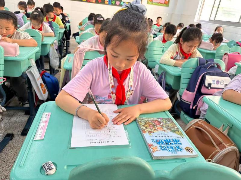 课堂是写字教学的主阵地,每周三的午自习是同学们的集中练字时间。午自习的铃声一响,同学们便在老师遒劲的粉笔字迹中,细致的笔画讲解中,体悟汉字书写的魅力;便在横竖撇捺的笔画架构中,在穿插避让的笔画位置中,探索汉字书写的奥秘。从提醒握笔姿势与写字坐姿,到强调书写美观与速度,写字课上,一双双认真观察的小眼睛,一只只踏实练习的小手,都是同学们不断进取的见证。