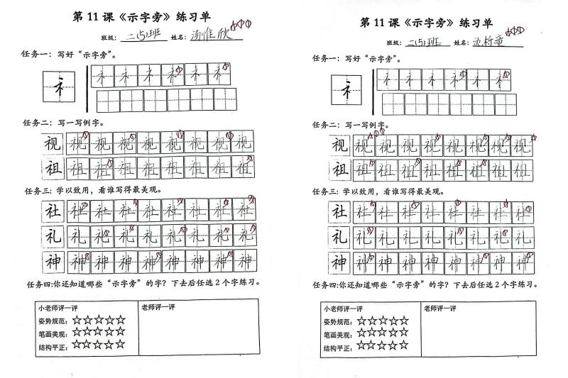 课堂练习是基础的地基,课后巩固便是加强的台阶。语文组印发了“每周一练”练字纸,同学们利用周末时间在家坚持练习书写。低年级的家长们化身“书法监督员”,陪孩子们一起完成铅笔字书写任务,并在班级群里分享优秀作品,互相鼓励,共同进步;中高年级的不少同学还组成“钢笔字练字小组”,互相点评,提升书写水平。一份份日益工整的书写作品,是同学们精益求精的最好证明。