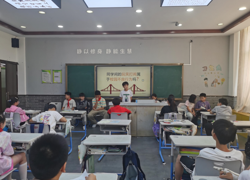活动伊始,法治晨会上,班主任通过生动案例,深入浅出地讲解了校园不良行为与青少年违法行为的界定及危害,提醒同学们要明辨是非,自觉抵制不良行为。同学们认真聆听,积极互动,对法治知识有了初步认识。