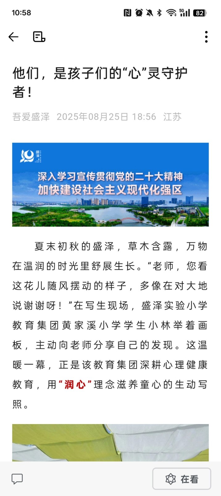 盛泽实验小学教育集团“”润心“”活动被报道在“”吾爱盛泽“”微信公众号