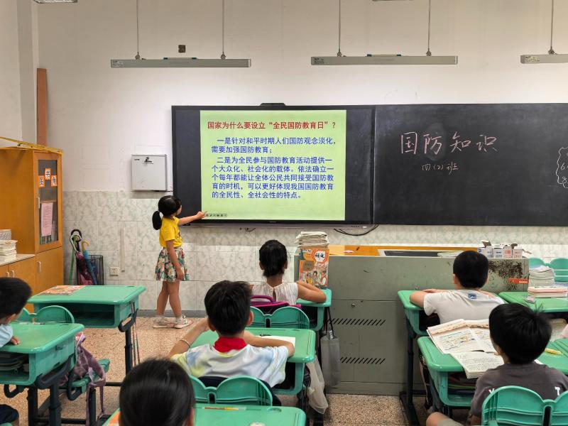 9月16日,各班利用晨会课,开展了国防教育主题晨会。通过精心制作的PPT课件,向全体同学详细介绍全民国防教育日的由来、意义和相关知识。生动形象的讲解将帮助孩子们对国防建设有更全面、更深入的认识,激发他们的爱国热情。