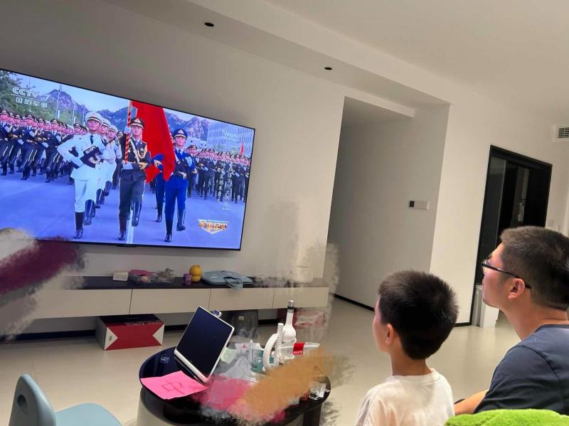低年级的小朋友们在家长的陪伴下观看《战狼》《红海行动》等国防题材电影或93阅兵仪式,在温馨的亲子互动中感受国防力量的强大;