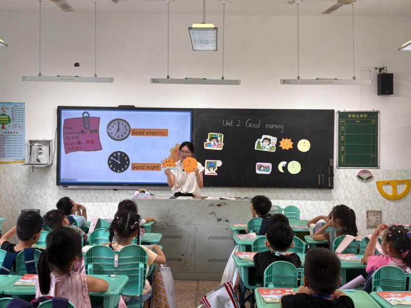 在教学过程中,金老师巧妙地运用了多媒体课件、单词卡片和实物道具,将抽象的单词和句型转化为直观、形象的感知内容。孩子们在“听一听、做一做、唱一唱、演一演”中,轻松愉快地掌握了核心词汇与日常用语。课堂上,孩子们兴致高昂,争先恐后地参与互动,充分体现了“在玩中学,在学中乐”的教学理念。