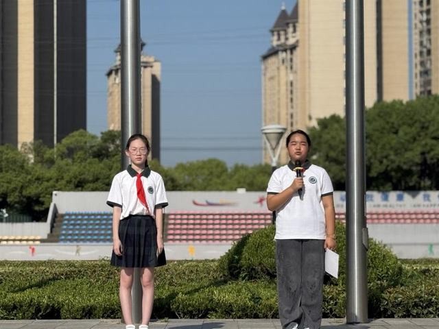 升旗仪式上,当国歌奏响,让我们以最标准的注目礼致敬国旗;当“文明礼仪”主题讲话响起,让文明规范的种子在心中发芽。唱国歌的每一个音节、行注目礼的每一个姿态,都是我们对“爱国”与“规范”的生动诠释。