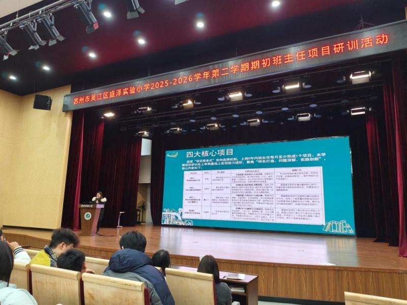 为夯实青年班主任的专业基础,提升班级管理与育人实践能力,2026 年 3 月2日,苏州市吴江区盛泽实验小学在报告厅隆重举行 2025-2026 学年第二学期期初班主任项目研训活动。本次活动由德育处戴宏飞老师主持,青年班主任参与,聚焦 “特色打造、问题深解、实践创新”,开启新学期班主任专业成长新征程。